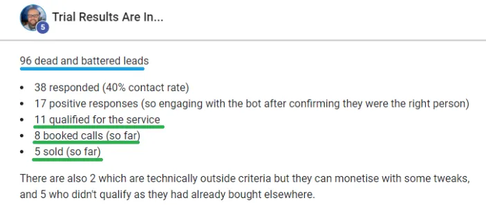 "From 467 old leads we had 103 of them ask for an Instant Callback and another 93 of them booked appointments.